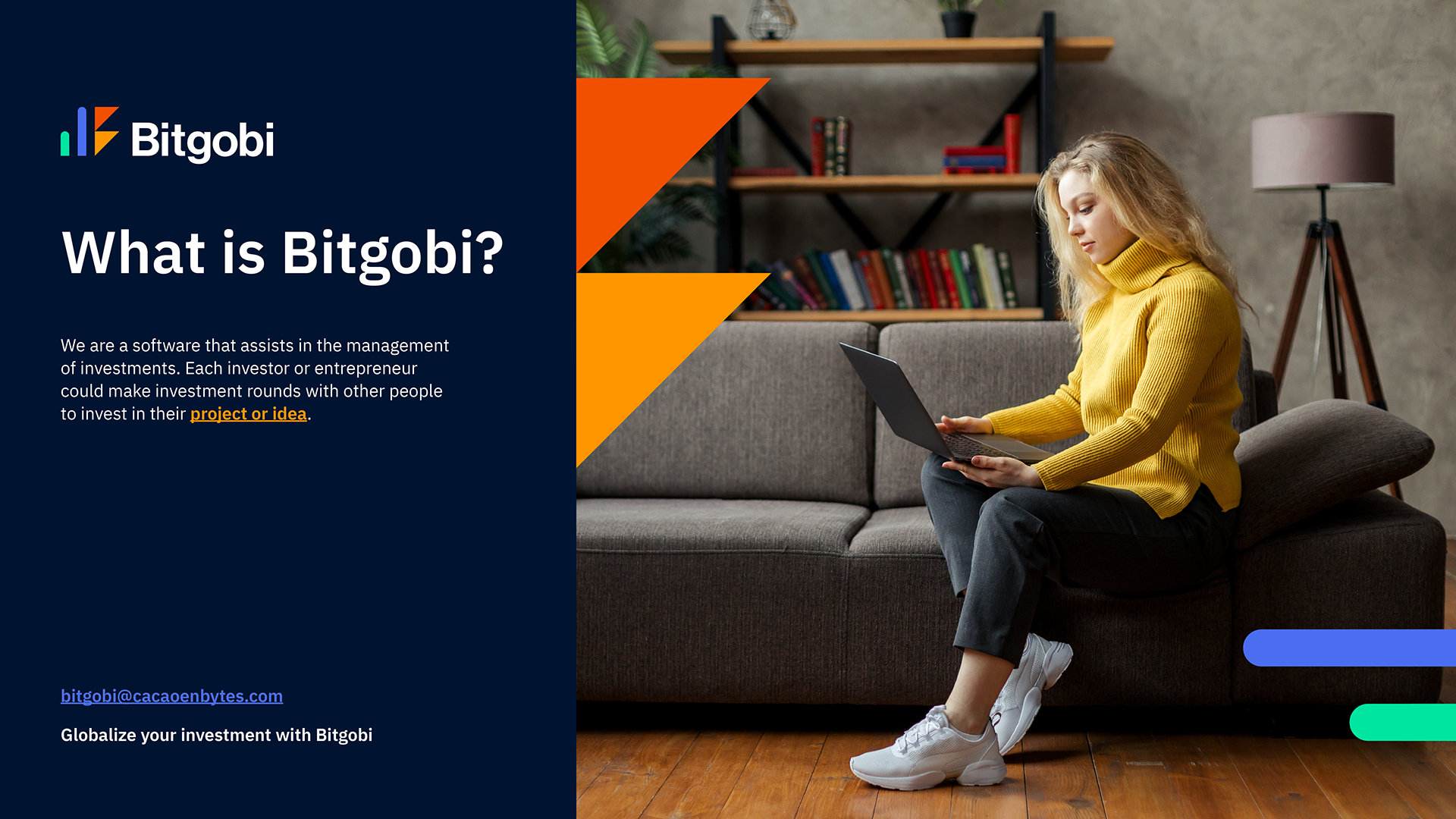 Bitgobi es un software diseñado para que los usuarios puedan crear proyectos de inversión y explorar múltiples opciones de financiamiento, con herramientas que les permiten dar seguimiento a todo el proceso y potenciar sus ideas de emprendimiento.