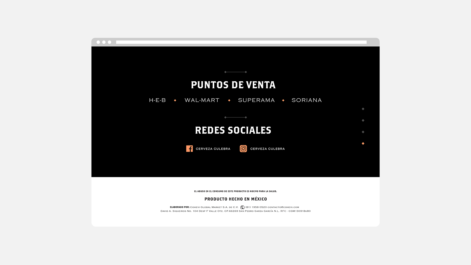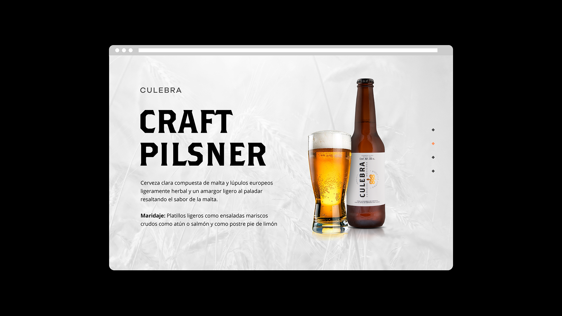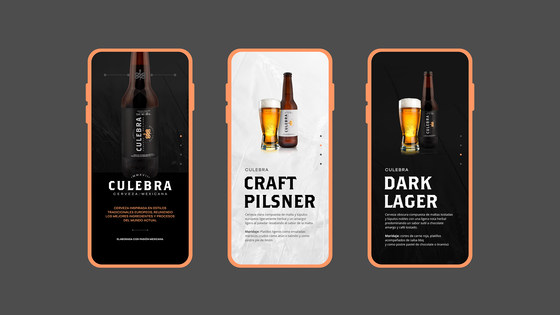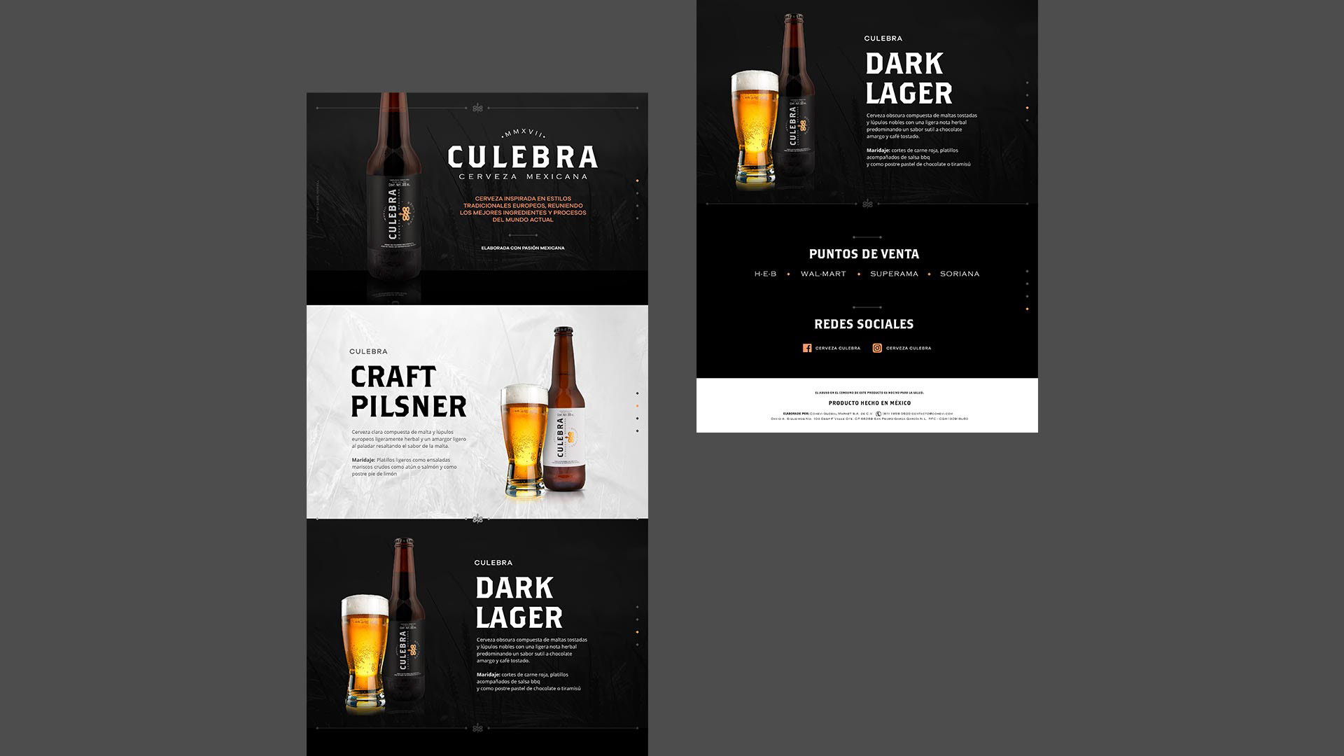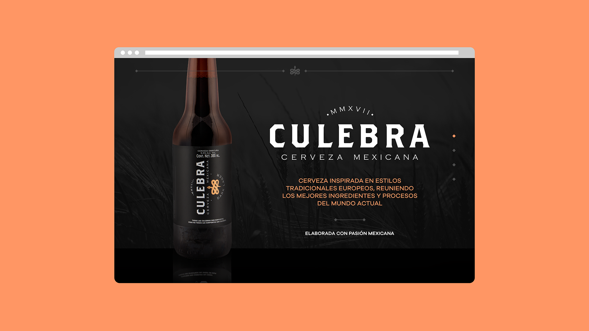 El diseño respeta y amplifica la identidad visual de Culebra, haciendo uso de sus elementos gráficos distintivos, paleta de color y tono de voz directo. El resultado es una experiencia web que refleja la actitud independiente, mexicana y auténtica de esta cerveza única.