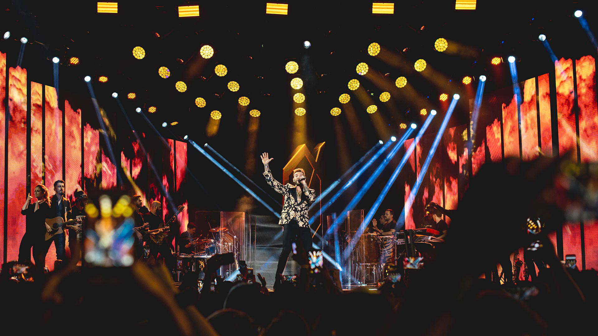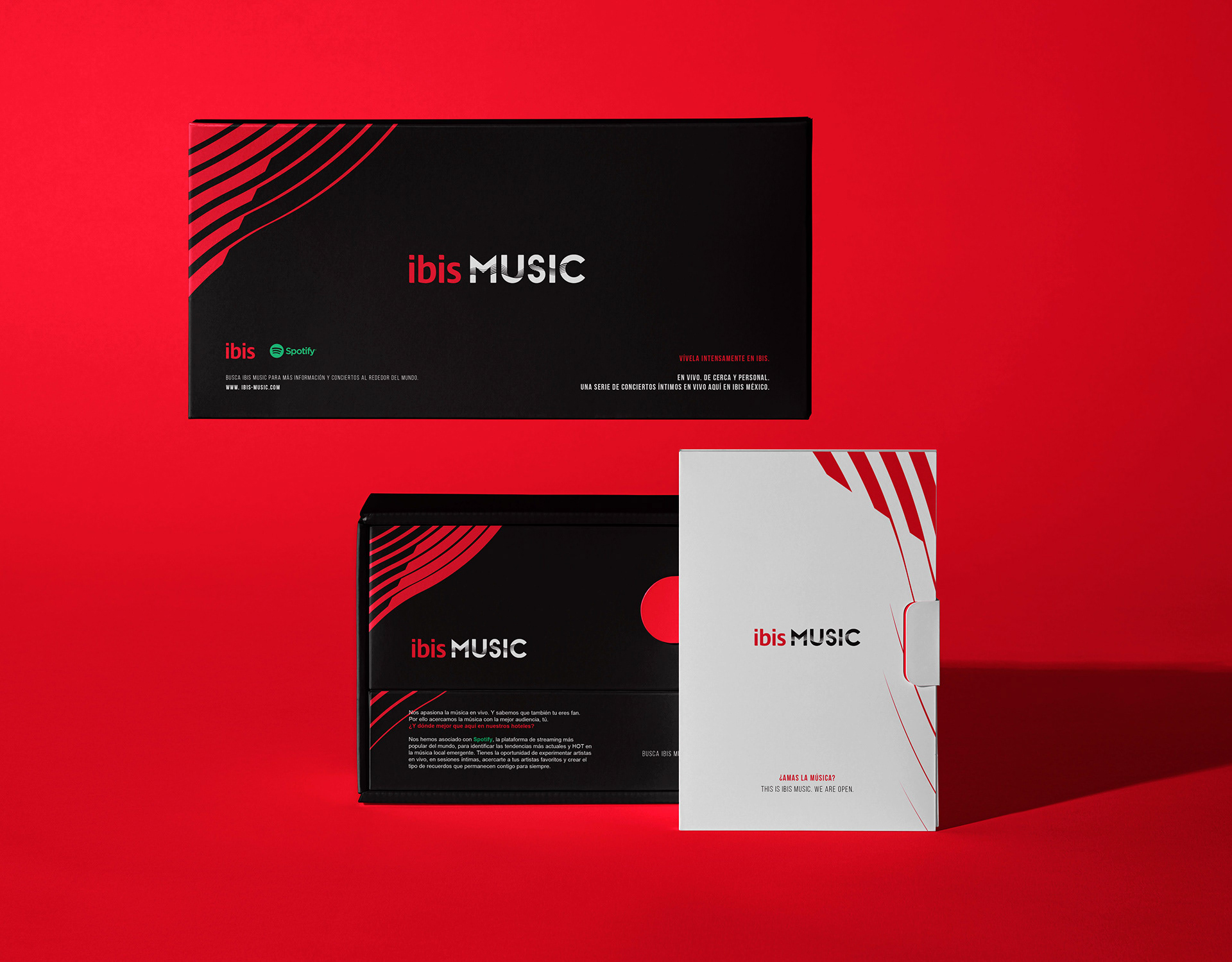 Las texturas rojas, inspiradas en ondas sonoras, refuerzan la conexión con la música y aportan dinamismo visual. En conjunto, el diseño logra un equilibrio vibrante y contemporáneo."
