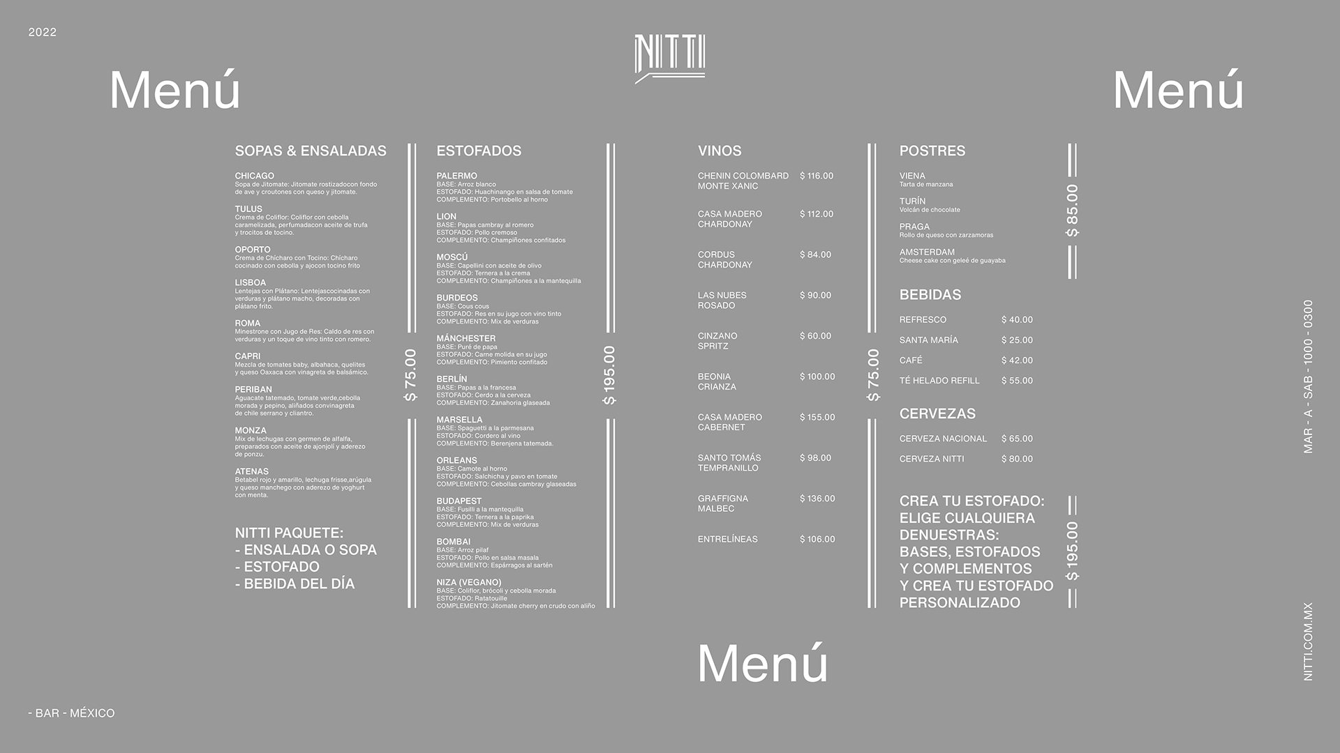 El concepto de Nitti combina elegancia, misterio y carácter. Cada detalle del branding fue cuidadosamente pensado para comunicar una experiencia memorable y con personalidad propia.